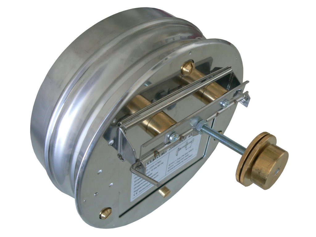 Regulátor tahu s explozní klapkou pro komín SCHIEDEL PRIMA průměru 180 mm, zabraňuje překročení tlaku. Chrání spotřebič a kouřovou cestu při výbuchu nespálených plynů.